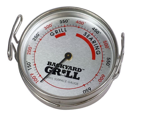 This BBQ grill surface gauge is for grilling or getting to the perfect searing temperature. Good for any cooking surface with stainless steel construction and a large 2.2" diameter with a wide temperature range: 100 to 800°F. Raised tabs so you can easily move it around your grill using grill tools or heat resistant gloves.