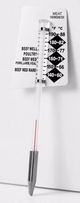 This glass thermometer is the perfect way to check the temperature of the meat. Just insert the probe of the thermometer into the meat, and you can see the temperature in both Celsius and Fahrenheit.